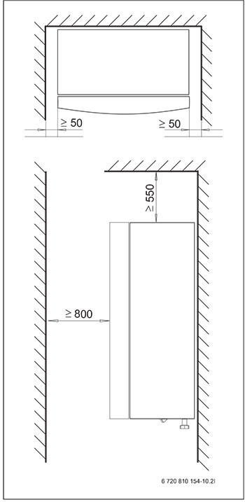 - razmik zunanje enote od zidov, hodnika, teras, itd., ne sme biti manjši od minimalnih odmikov (glejte sliko spodaj)