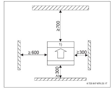Minimalni odmiki in zahteve za postavitev zunanje enote Compress 3000 AW: