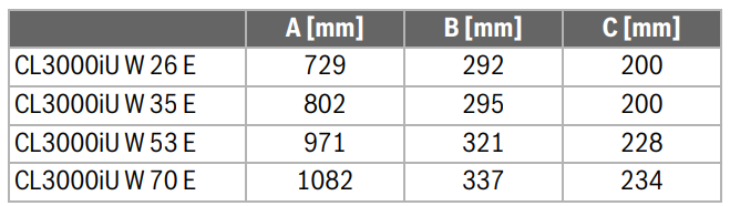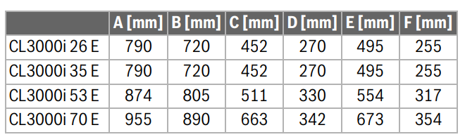 | Zunanja enota | CL3000i 26 E | CL3000i 35 E | CL3000i 53 E | CL3000i70 E | |