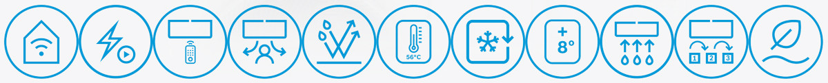 - I-Clean: notranja enota po izključitvi klimatske naprave prične delovati po posebnem delovnem režimu, ki z izpihovanjem in sušenjem notranjega izmenjevalnika zagotovi čist in zdrav zrak v prostoru.