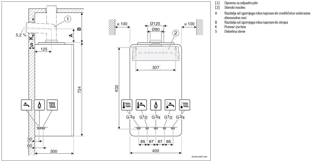 Stenski plinski kondenzacijski kotel Bosch Condens 2300 W
