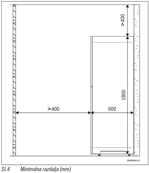 Minimalni odmiki za postavitev zunanje enote Compress 3400i AW: