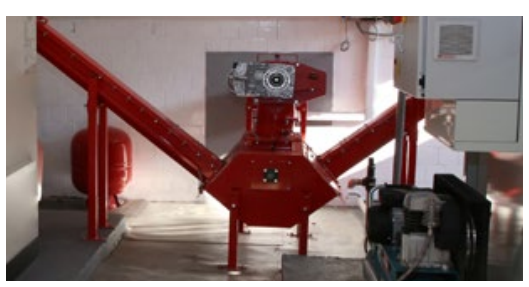04 Kavelj za drobljenje goriva; večje kose sekancev samodejno potisne v celično kolo, kjer se kasneje zdrobijo na manjše dele