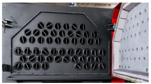 Naši industrijski ogrevalni kotli so opremljeni z vodoravnim toplotnim izmenjevalnikom in učinkovitimi turbulatorji. Popolnoma samodejno čiščenje toplotnega izmenjevalnika poteka s stisnjenim zrakom, brez da bi bilo potrebno prekiniti delovanje. Zahvaljujoč temu samodejnemu sistemu čiščenja toplotnega izmenjevalnika ostaja stopnja učinkovitosti kotla zelo visoka in zagotavlja na dolgi rok nizko porabo goriva in nizke stroške ogrevanja.