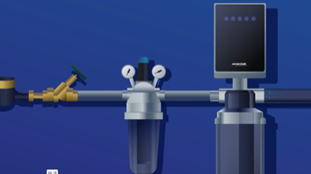 Ko voda vstopi v stanovanjsko stavbo steče skozi predpisani gospodinjski filter za vodo, kot je naš črni filter s izpiranjem Permaster z regulatorjem tlaka. Ta odstrani rjo in delce peska, ki jih nanese od zunaj.