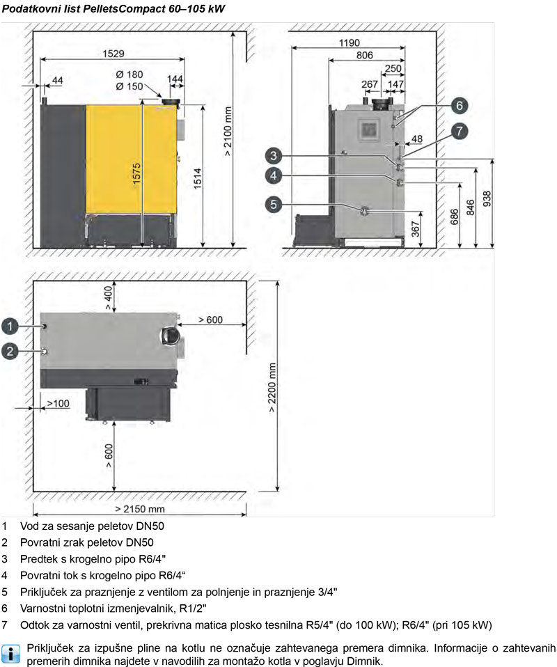| Zahtevani vlek dimnika | Pa | > 3 Pa Pri vleku dimnika nad 15 Pa je potreben omejevalnik vleka | |||