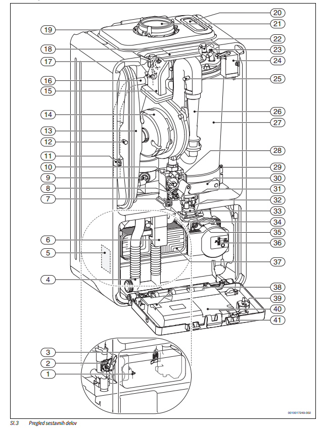 - nazivna moč kotla: 24 kW, ogrevanje sanitarne vode 28 kW